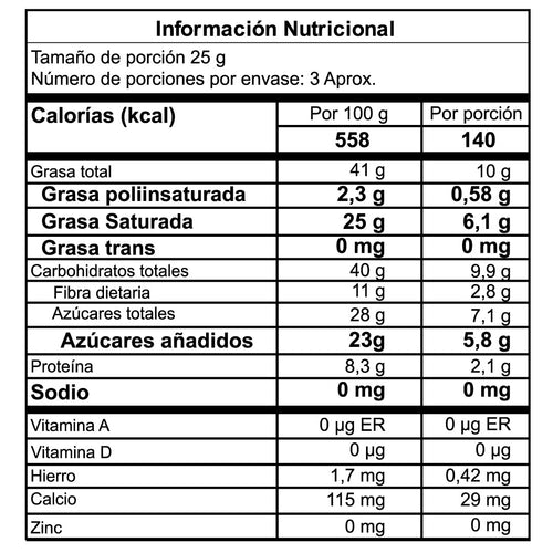 Ingredientes: Licor de cacao, Miel de abejas, manteca de cacao.