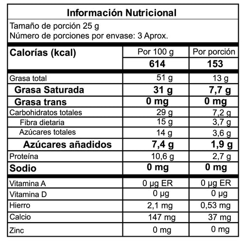 Ingredientes: Licor de cacao, Miel de abejas, manteca de cacao.