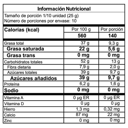Modo de uso: Producto para consumo directo, repostería y fondue.