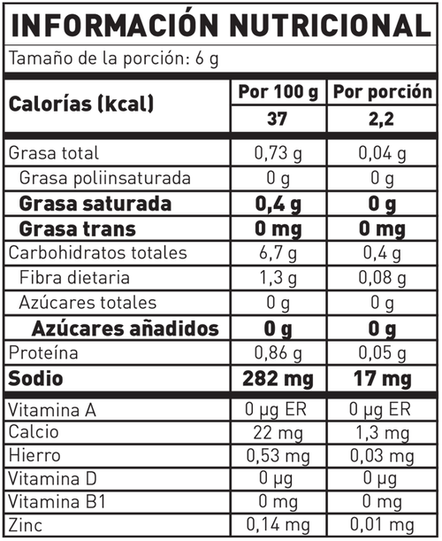 No contiene colorantes, ni saborizantes artificiales. Se produce de forma artesanal siguiendo las mejores prácticas de manufactura.