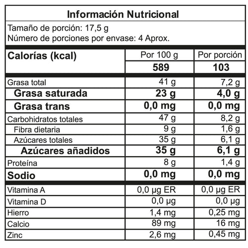 Nibs de cacao cubiertos de chocolate 53% contenido de cacao, con un alto valor nutricional al ser considerado un Super Food. Disfrútalos como snack o como ingrediente para postres, helados, batidos o repostería.